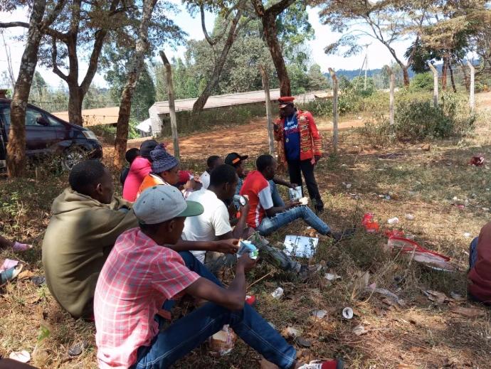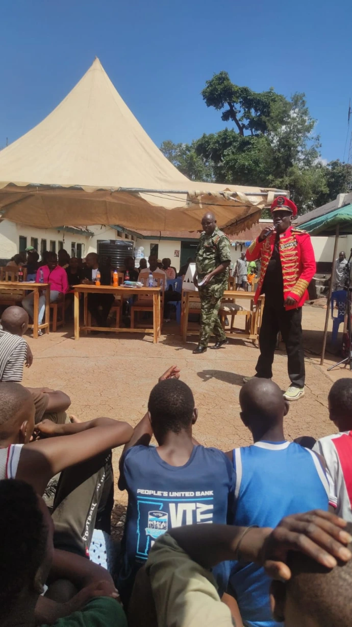 He also reaches market traders, prisoners, drug users and any community members at high risk of HIV. In this photo he is with prisoners in Thika Main Prison.